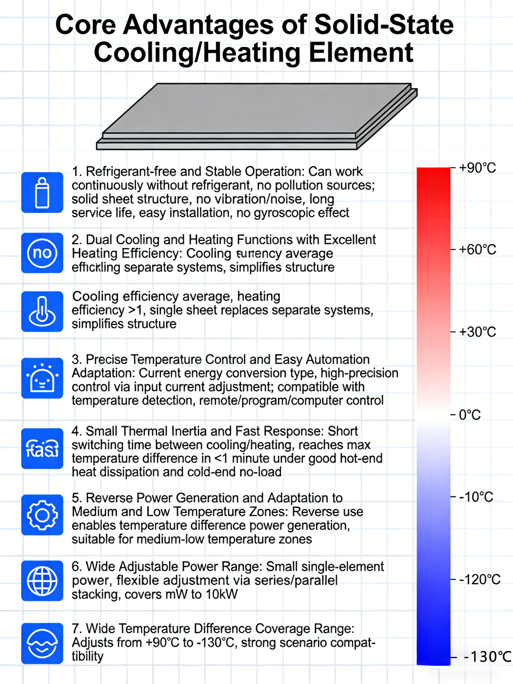 7. Wide temperature difference range: It can achieve wide-range temperature difference adjustment from +90℃ positive temperature to -130℃ negative temperature, with strong application compatibility.